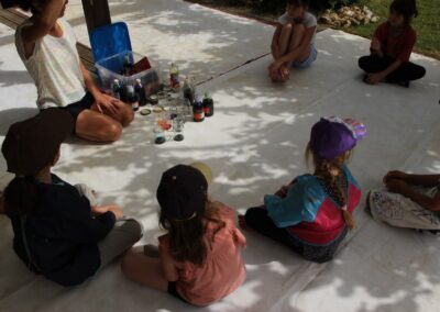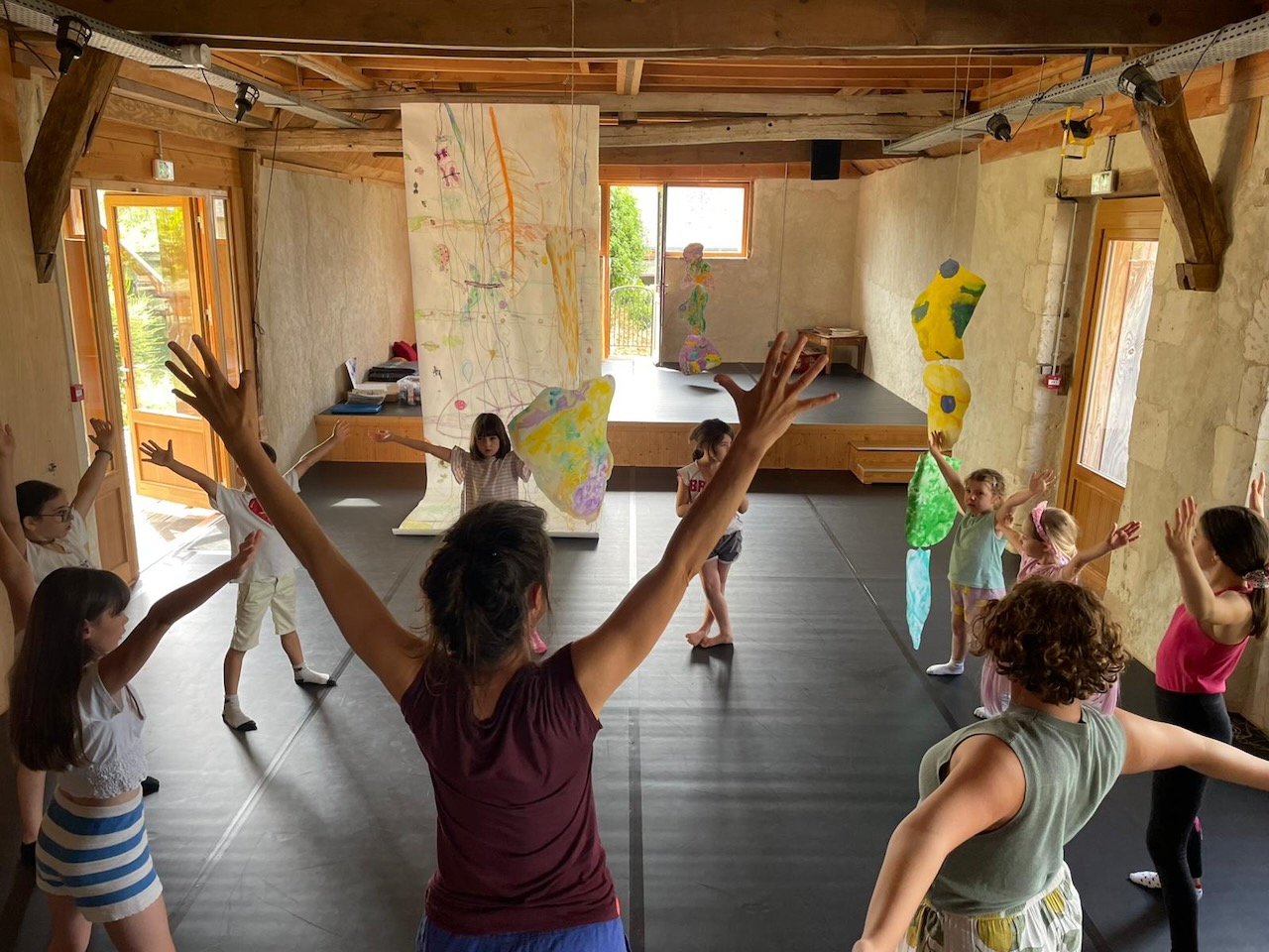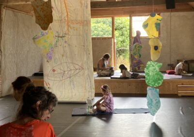 Nous cheminons à travers la pratique du yoga, de la danse, des arts plastiques, du jeu avec les matières vers des créations aux formes plurielles. Dans un esprit de simplicité de joie, et de bienveillance, les enfants sont accompagnés dans leurs imaginaires, et le développement de leurs créativités. Le dernier jour, les enfants partagent leurs créations et traversées avec les familles et amis à 17h.