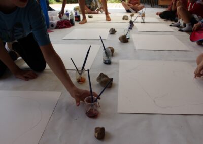 Ces semaines d’immersion permettent aux enfants de découvrir et d’ expérimenter le processus de création artistique sur un temps continu, de diversifier les langages d’expression, et de les familiariser avec l’acte et la pensée artistique, et plus particulièrement avec la création in situ et pluridisciplinaire.