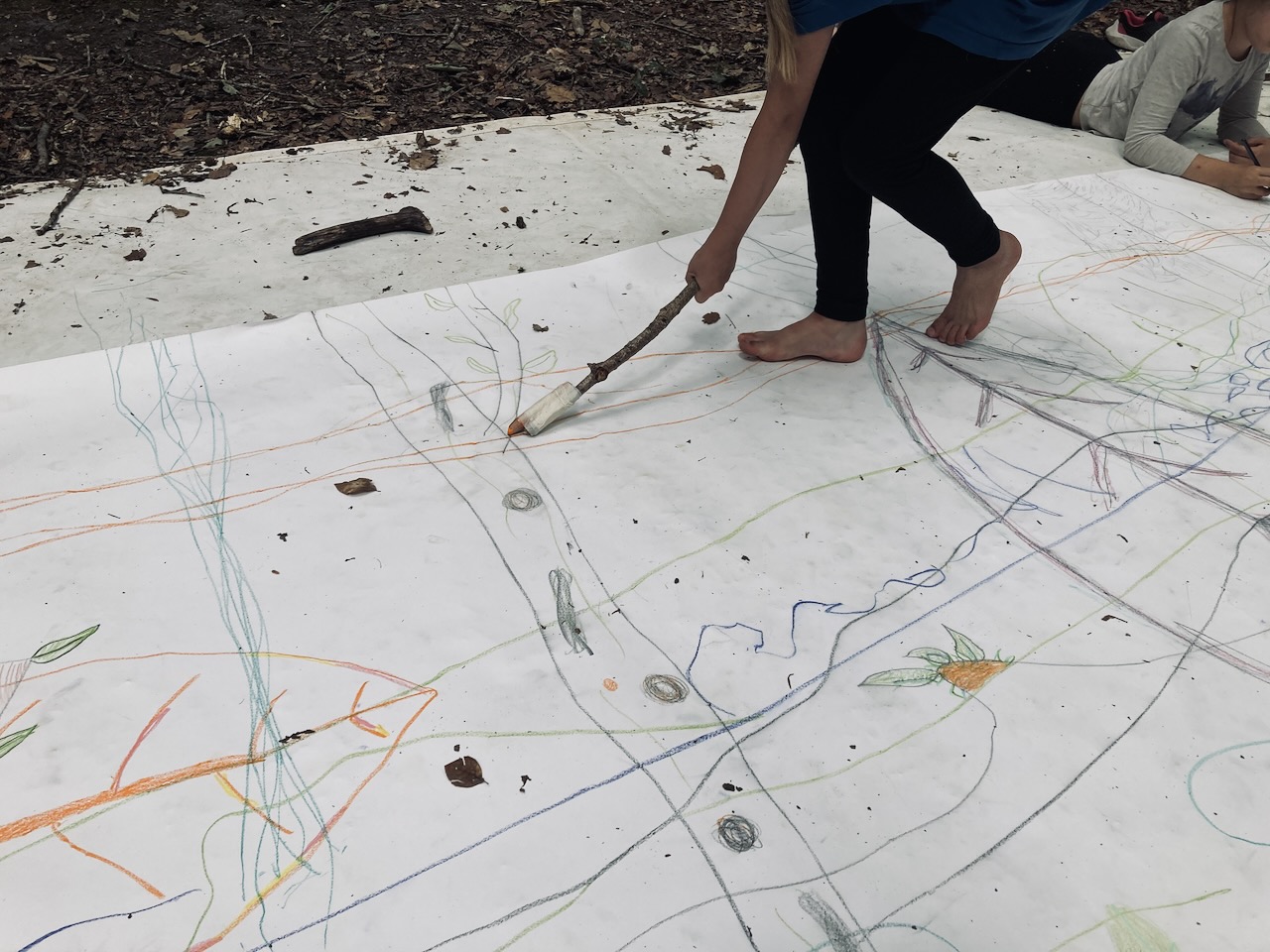 Gaëlle Guéranger intervient depuis de plusieurs années auprès des enfants dans le cadre du temps scolaire. Elle souhaite pouvoir proposer un autre rapport au temps à l’enfant, plus immersif, permettant ainsi de développer et de creuser sur une semaine, et durant des journées entières, un processus créatif en lien avec l’environnement extérieur.