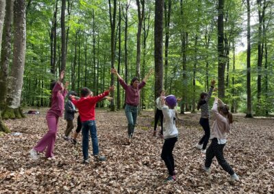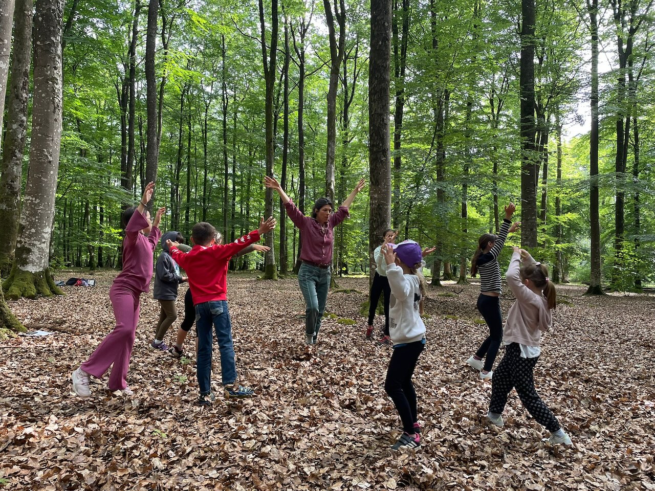 La semaine se construit autour d’une approche du corps, de l’éveil des sens, des perceptions, et de mises en mouvement en relation avec la nature, et l’environnement.